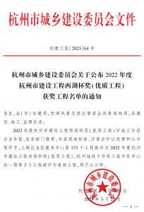 2022年度杭州市西湖區(qū)建設(shè)工程西子杯獎(jiǎng)(優(yōu)質(zhì)工程)