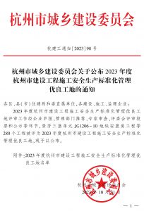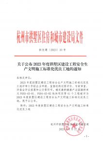 2023年度拱墅區(qū)建設(shè)工程施工安全生產(chǎn)標(biāo)準(zhǔn)化管理優(yōu)良工地