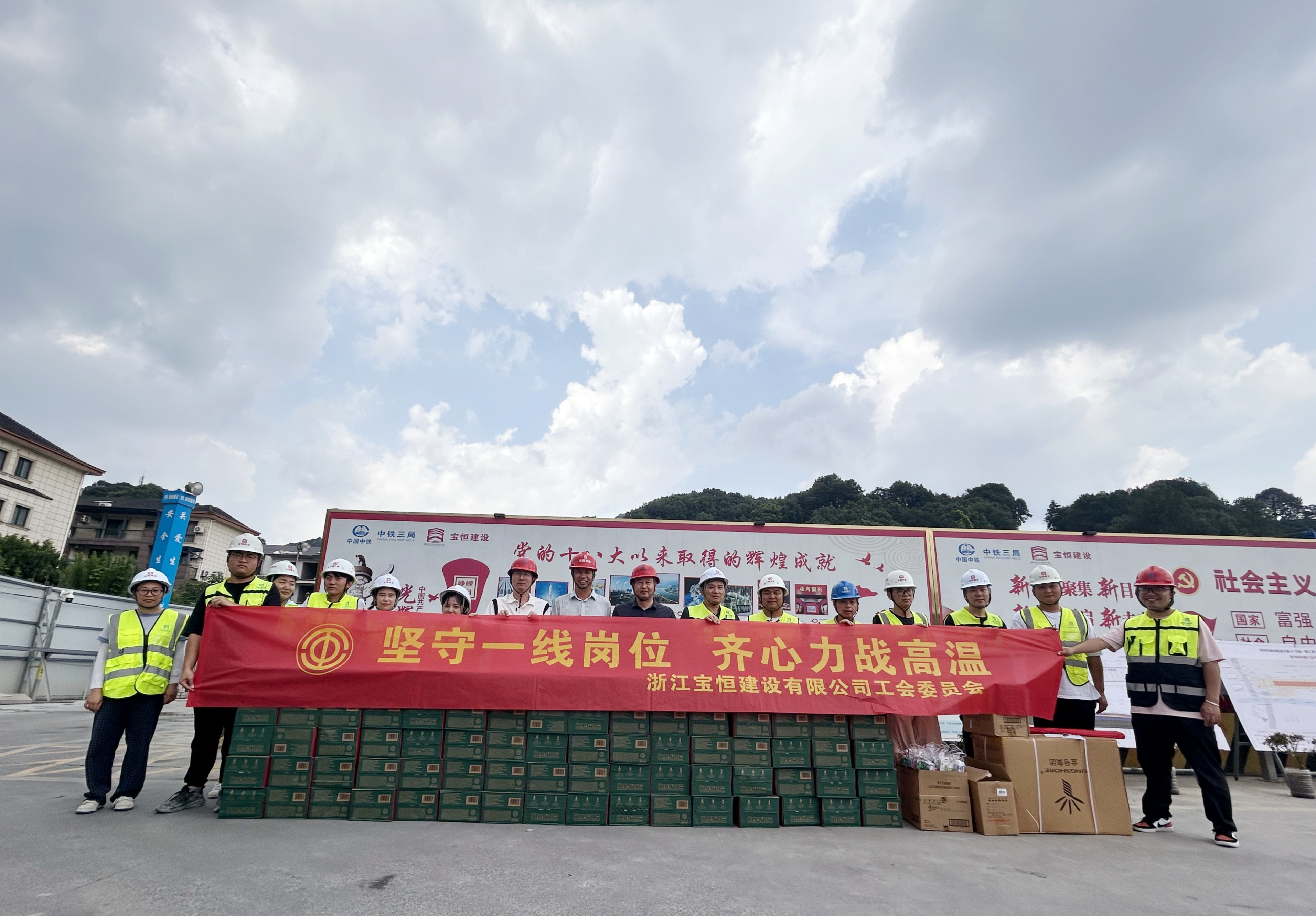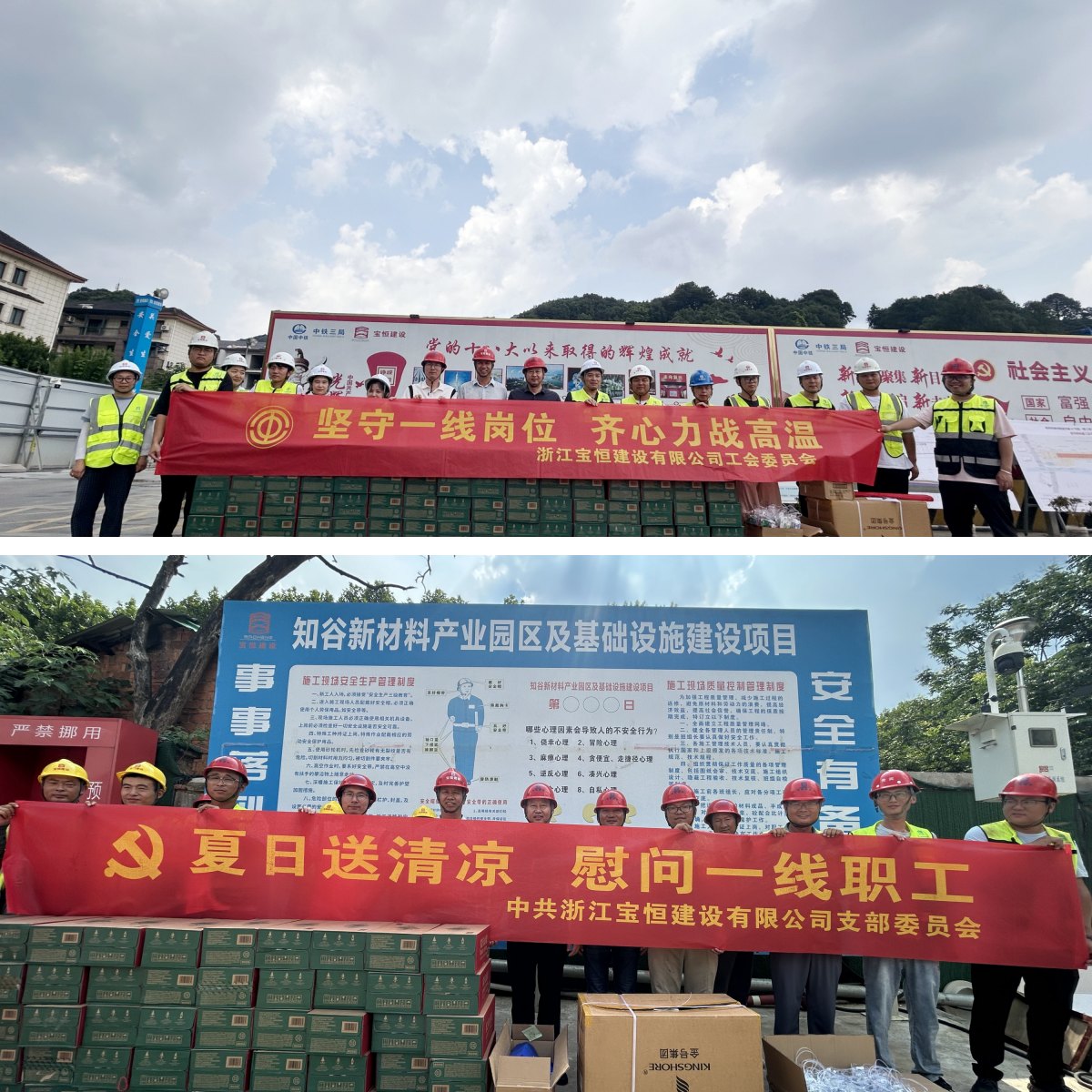七月杭城,驕陽似火。持續(xù)攀升的高溫炙烤大地,寶恒建設(shè)各項目工地卻依舊機械轟鳴、有序施工。為切實保障一線建設(shè)者的健康安全,科學(xué)推進(jìn)夏季施工進(jìn)度,2025年7月17日,公司黨支部聯(lián)合工會組成慰問小組,深入在建項目一線,開展“夏日送清涼”高溫慰問活動,為堅守崗位的工友送去防暑物資與組織關(guān)懷。
