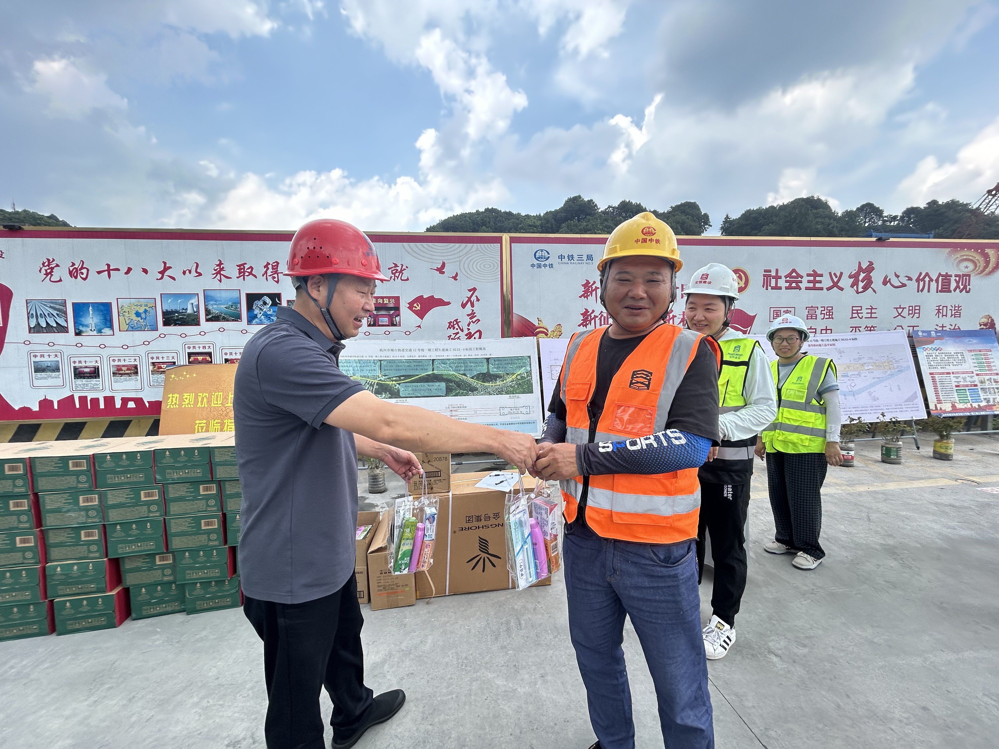 慰問小組先后來到城市軌道交通12號線一期工程土建SG12-4標(biāo)段、知谷新材料產(chǎn)業(yè)園區(qū)等7個重點項目現(xiàn)場,將礦泉水、藿香正氣水、毛巾、洗發(fā)水等防暑降溫用品遞到工友手中。工會主席閭仲金在現(xiàn)場關(guān)切詢問工人作息安排與身體狀況,并叮囑道:“高溫作業(yè)務(wù)必科學(xué)調(diào)節(jié)工時,做好個人防護(hù),身體是革命的本錢,安全是生產(chǎn)的底線。”一句句暖心話語,一份份實用物資,讓工人們在熱浪中感受到沁潤心田的清涼。